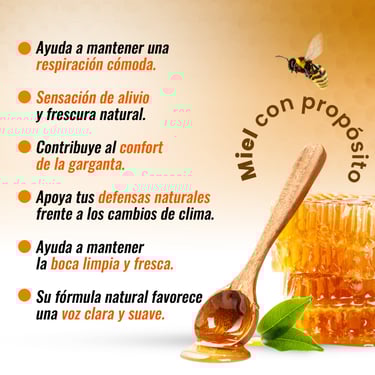 Este suplemento combina miel pura con una selección de extractos herbales tradicionalmente utilizados para el cuidado de las vías respiratorias. Su fórmula natural está diseñada para acompañar tu rutina diaria, brindando una sensación reconfortante en la garganta y apoyando el equilibrio respiratorio de manera suave y natural.